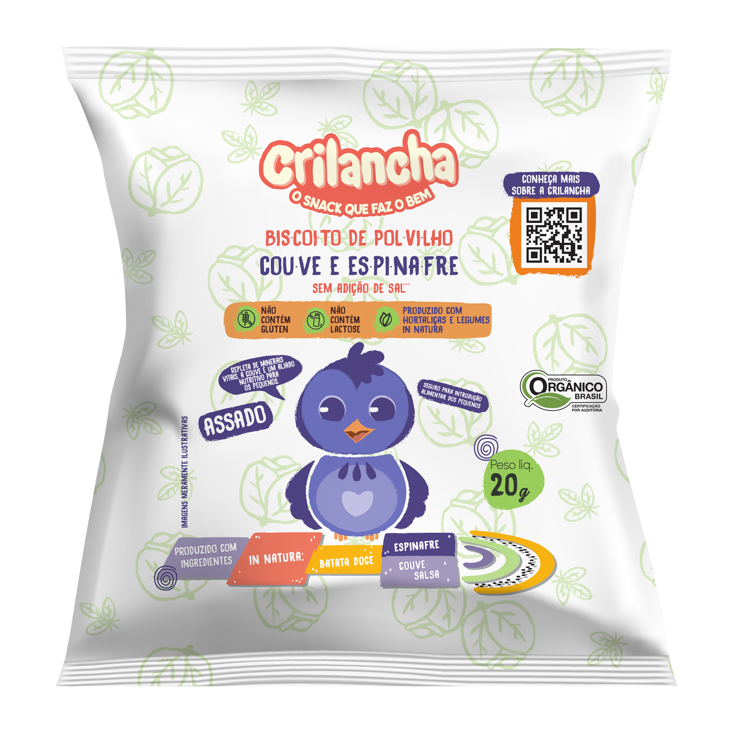 Temos opções para todas as idades! O biscoito de couve e espinafre é ideal para bebês em introdução alimentar, pois não contém sódio. Já os outros biscoitos infantis possuem adição mínima de sódio, dentro das recomendações nutricionais.